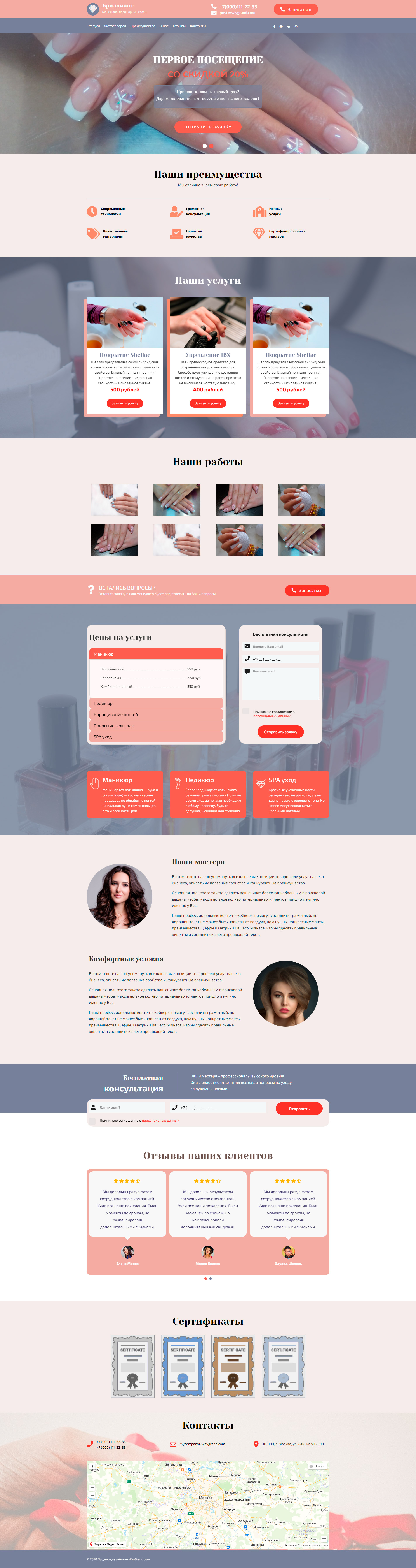 Закажите готовый продающий сайт лендинг #1107201 в Архангельске за 1-3 дня «под ключ»: свёрстан, отрисован и готов к рекламе. Тематика шаблона «Салон маникюра и педикюра».