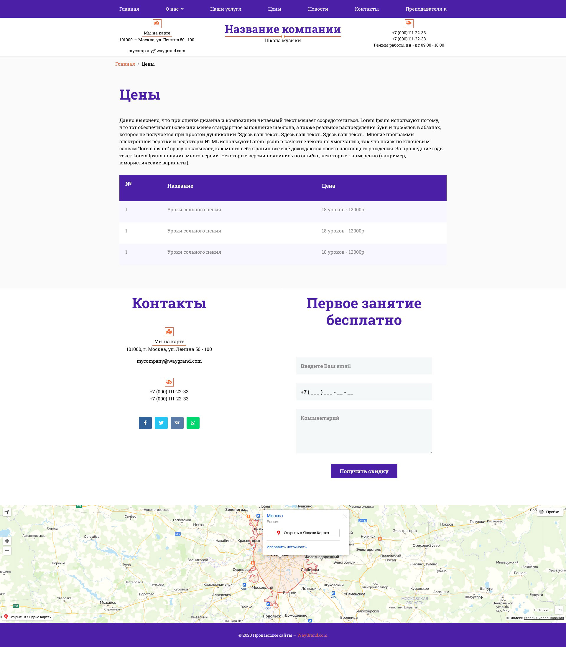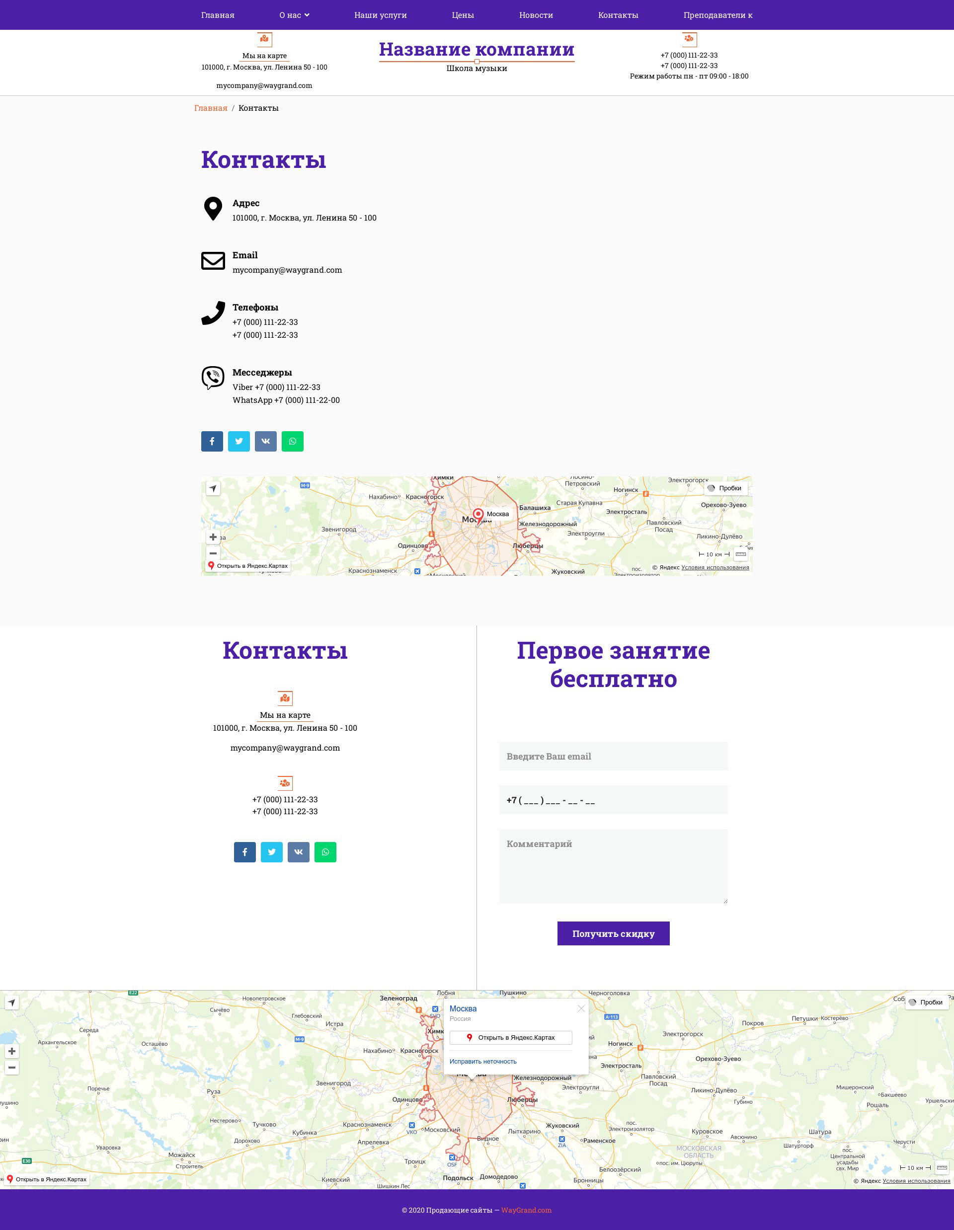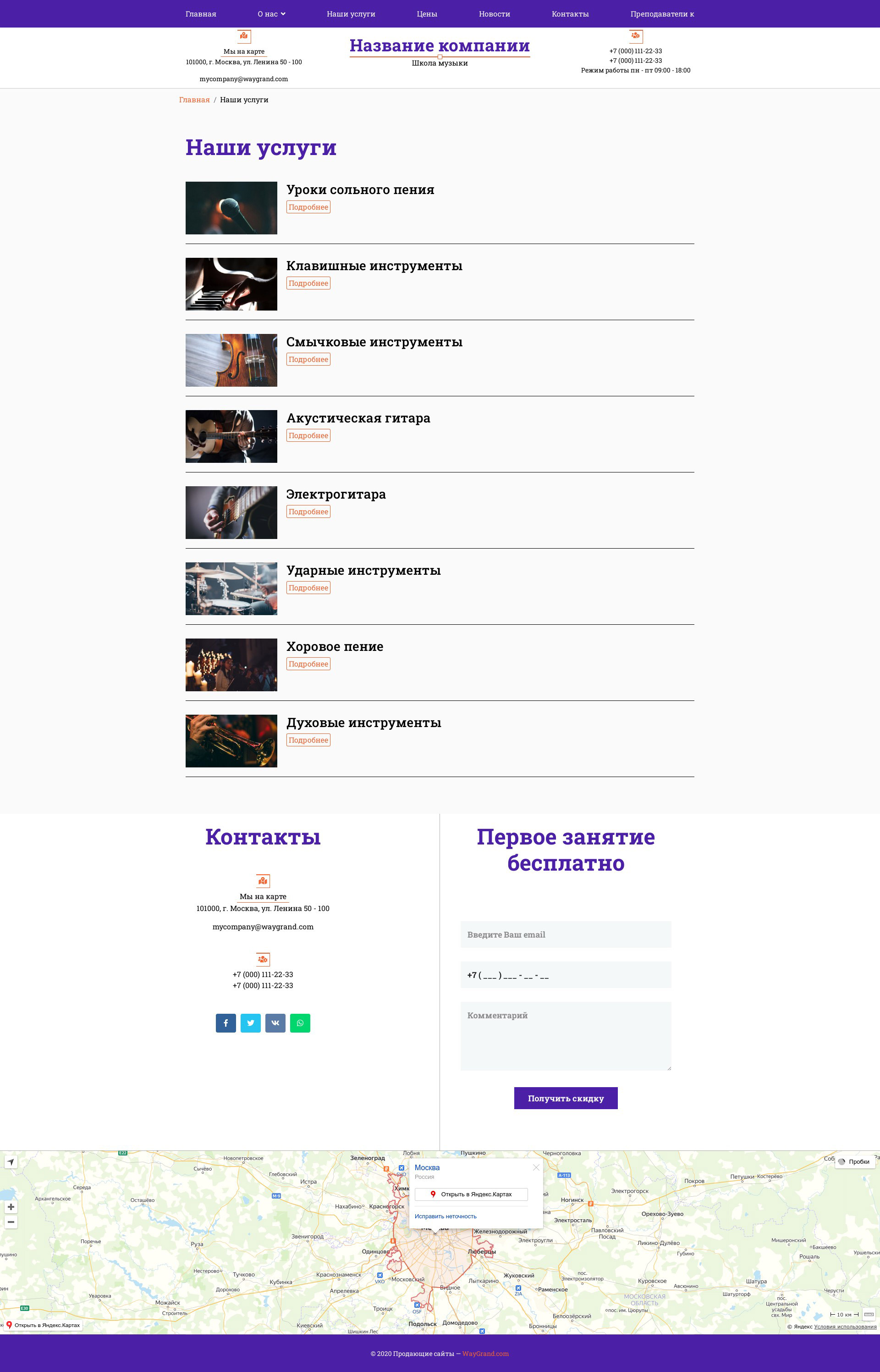 Закажите готовый продающий сайт визитка #1431301 в Архангельске за 5-7 дня «под ключ»: свёрстан, отрисован и готов к рекламе. Тематика шаблона «Школа музыки».