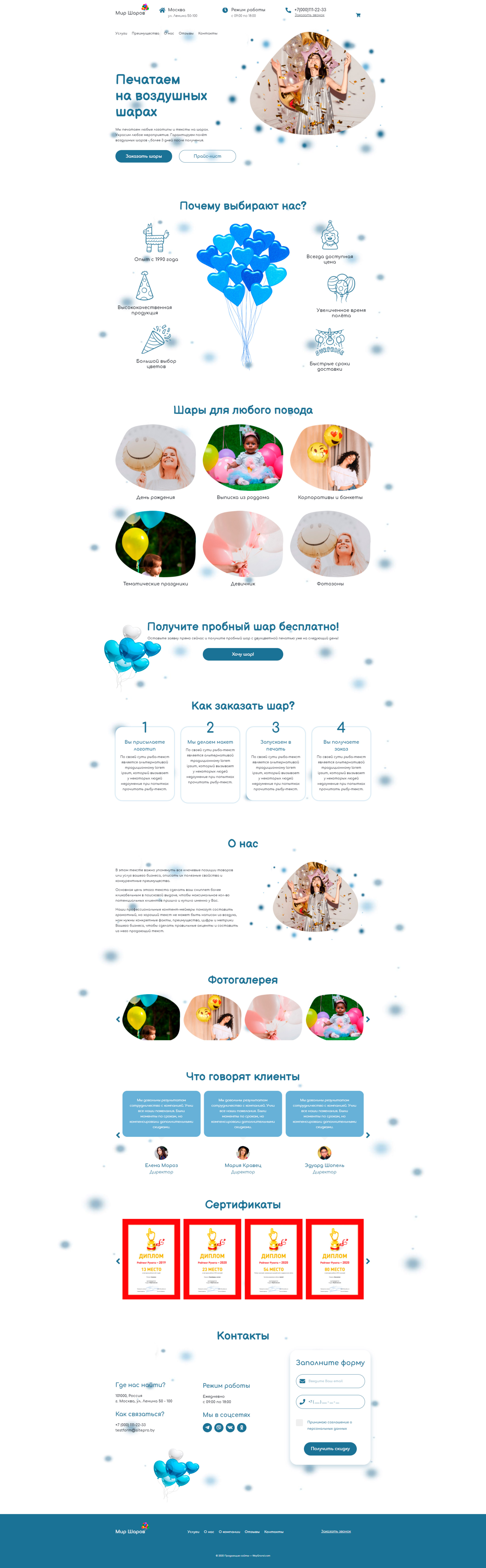 Закажите готовый продающий сайт лендинг #1826202 в Архангельске за 1-3 дня «под ключ»: свёрстан, отрисован и готов к рекламе. Тематика шаблона «Печать на воздушных шарах».