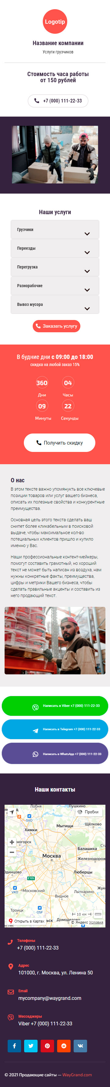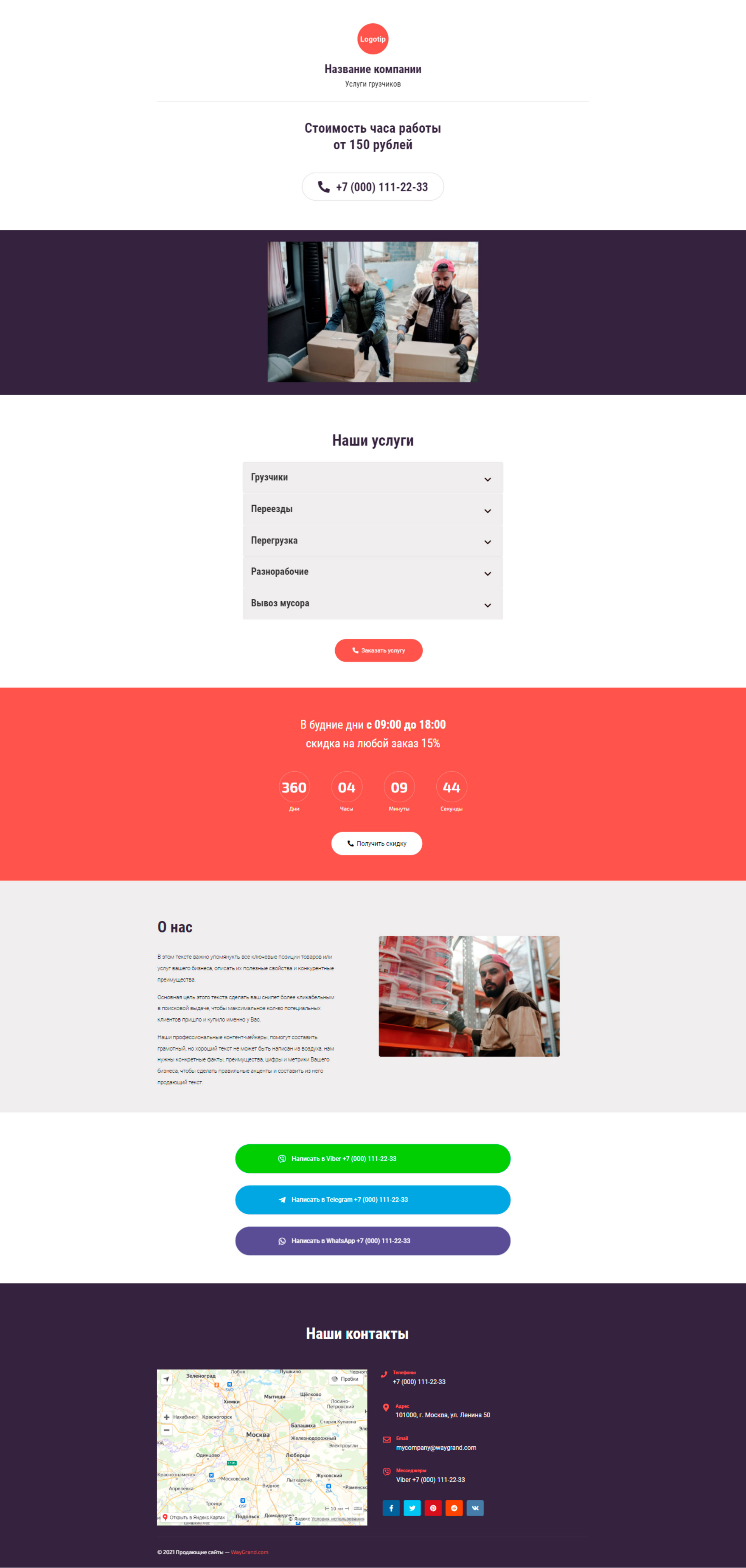 Закажите готовый продающий сайт визитка #2562101 в Архангельске за 5-7 дня «под ключ»: свёрстан, отрисован и готов к рекламе. Тематика шаблона «Услуги грузчиков».