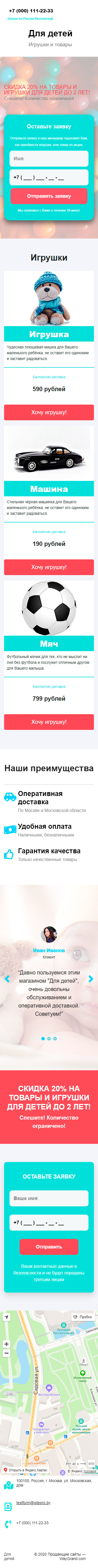 Закажите готовый продающий сайт лендинг #1509202 в Архангельске за 1-3 дня «под ключ»: свёрстан, отрисован и готов к рекламе. Тематика шаблона «Игрушки и товары».