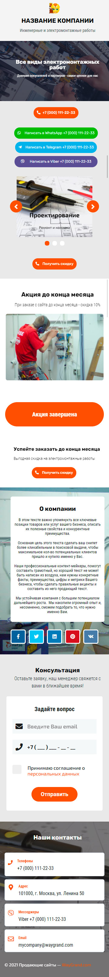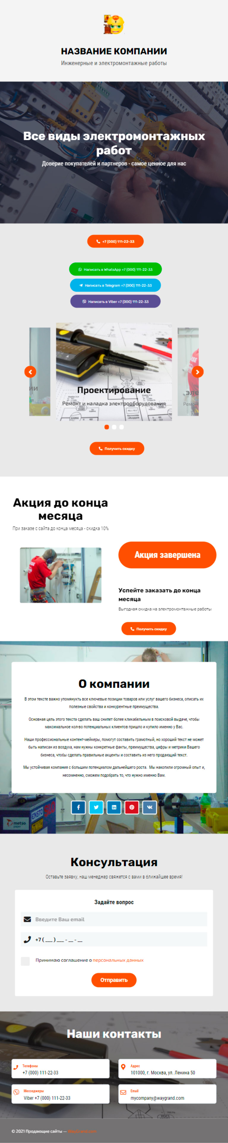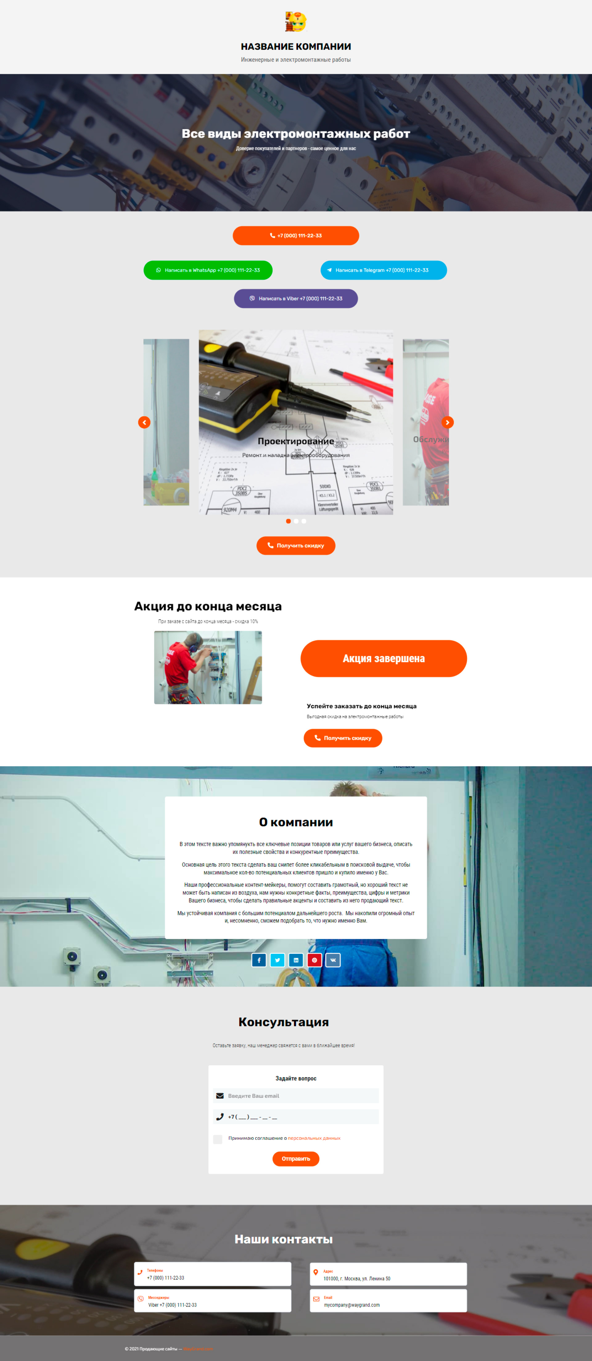 Закажите готовый продающий сайт визитка #2189101 в Архангельске за 5-7 дня «под ключ»: свёрстан, отрисован и готов к рекламе. Тематика шаблона «Инженерные и электромонтажные работы».