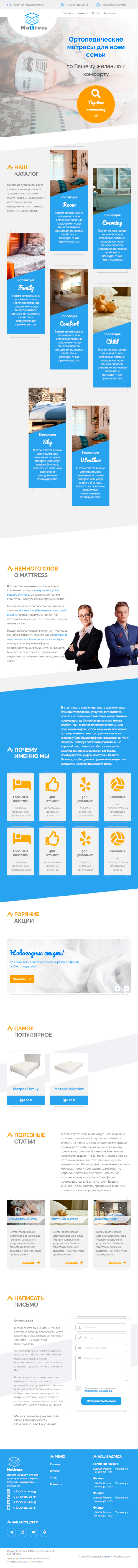 Закажите готовый продающий сайт лендинг #0907201 в Архангельске за 1-3 дня «под ключ»: свёрстан, отрисован и готов к рекламе. Тематика шаблона «Матрасы».