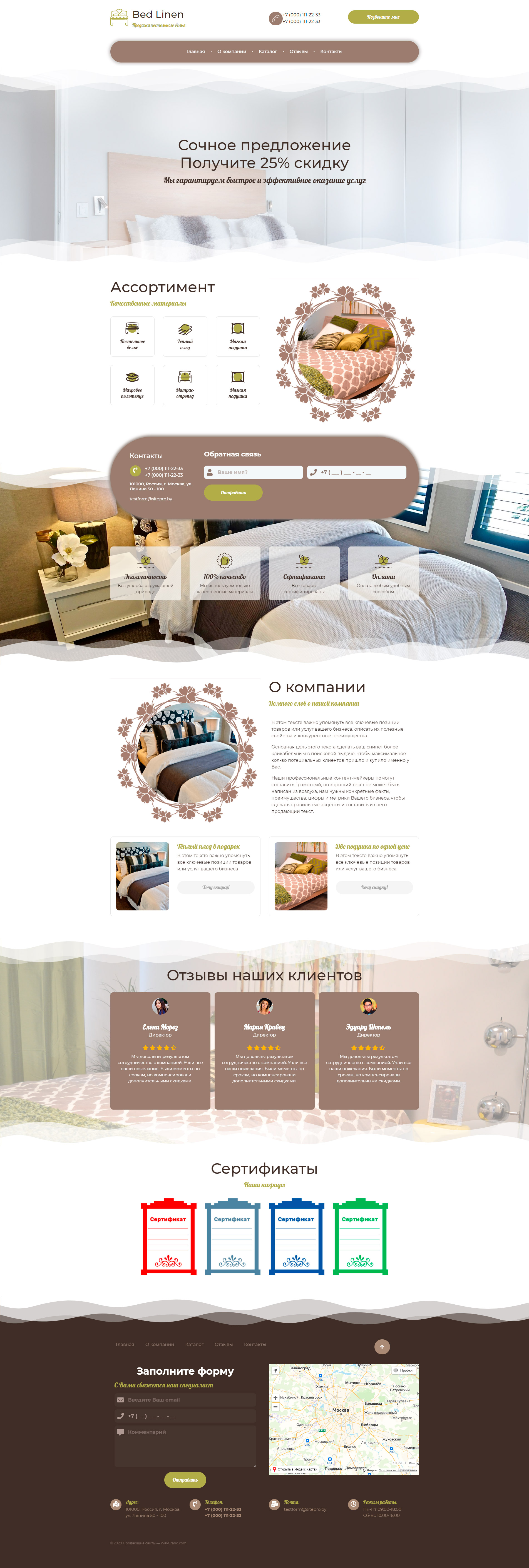 Закажите готовый продающий сайт лендинг #2210202 в Архангельске за 1-3 дня «под ключ»: свёрстан, отрисован и готов к рекламе. Тематика шаблона «Постельное белье».