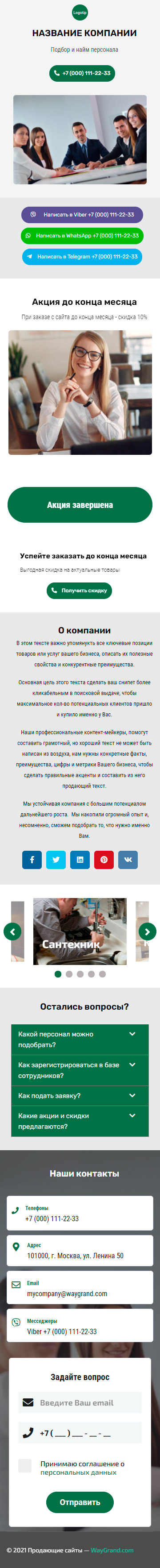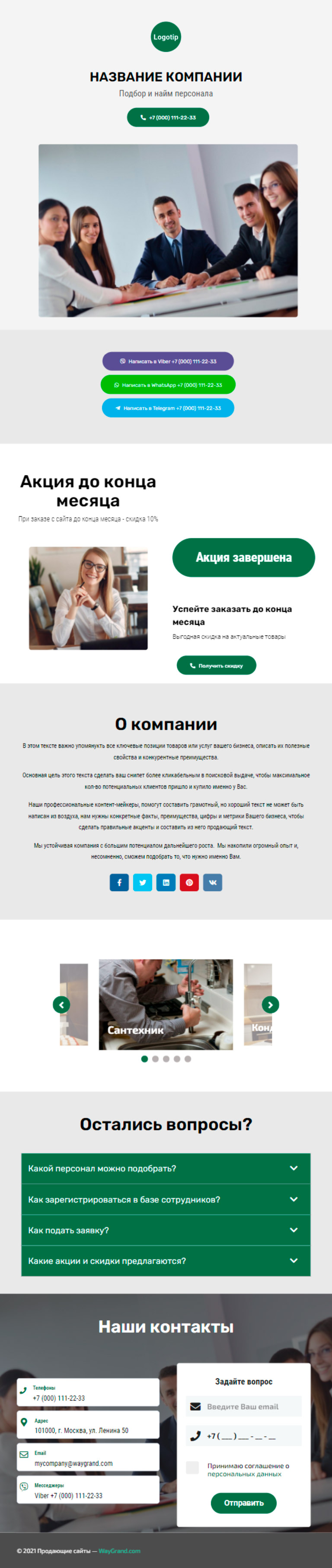 Закажите готовый продающий сайт визитка #1415101 в Архангельске за 5-7 дня «под ключ»: свёрстан, отрисован и готов к рекламе. Тематика шаблона «Подбор и найм персонала».