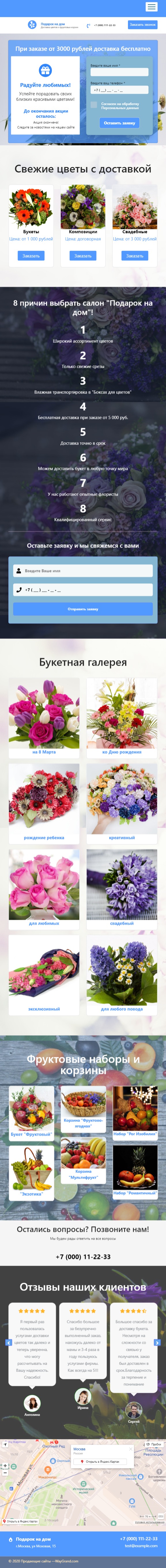 Закажите готовый продающий сайт лендинг #2404203 в Архангельске за 1-3 дня «под ключ»: свёрстан, отрисован и готов к рекламе. Тематика шаблона «Доставка букетов на дом».