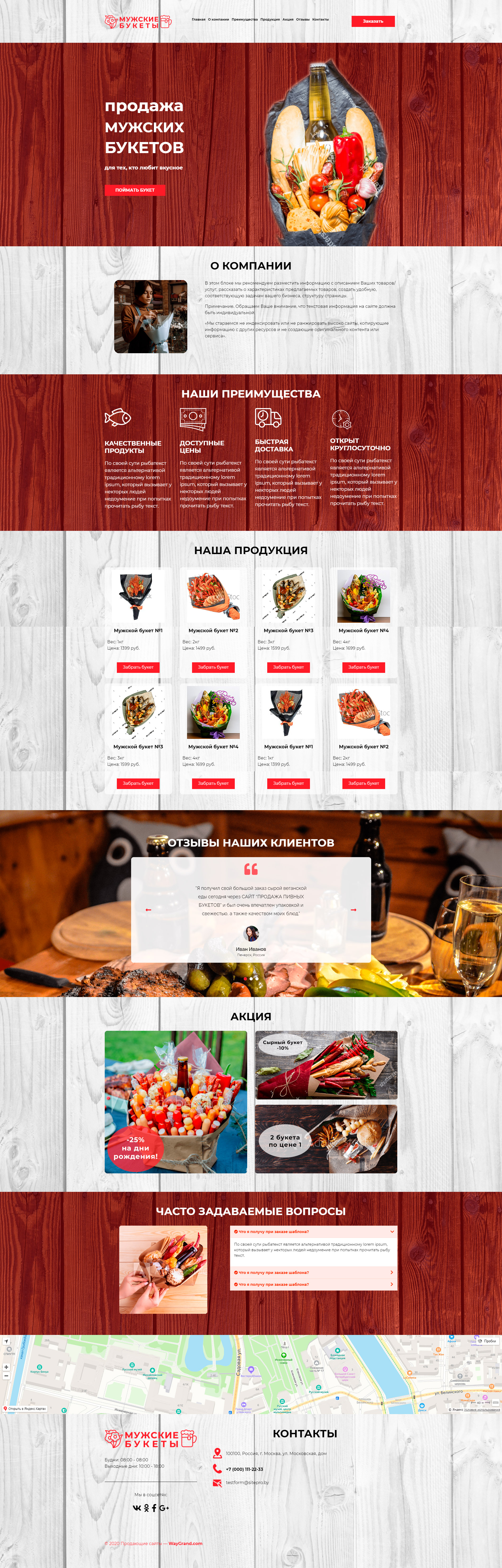 Закажите готовый продающий сайт лендинг #2404204 в Архангельске за 1-3 дня «под ключ»: свёрстан, отрисован и готов к рекламе. Тематика шаблона «Мужские букеты».