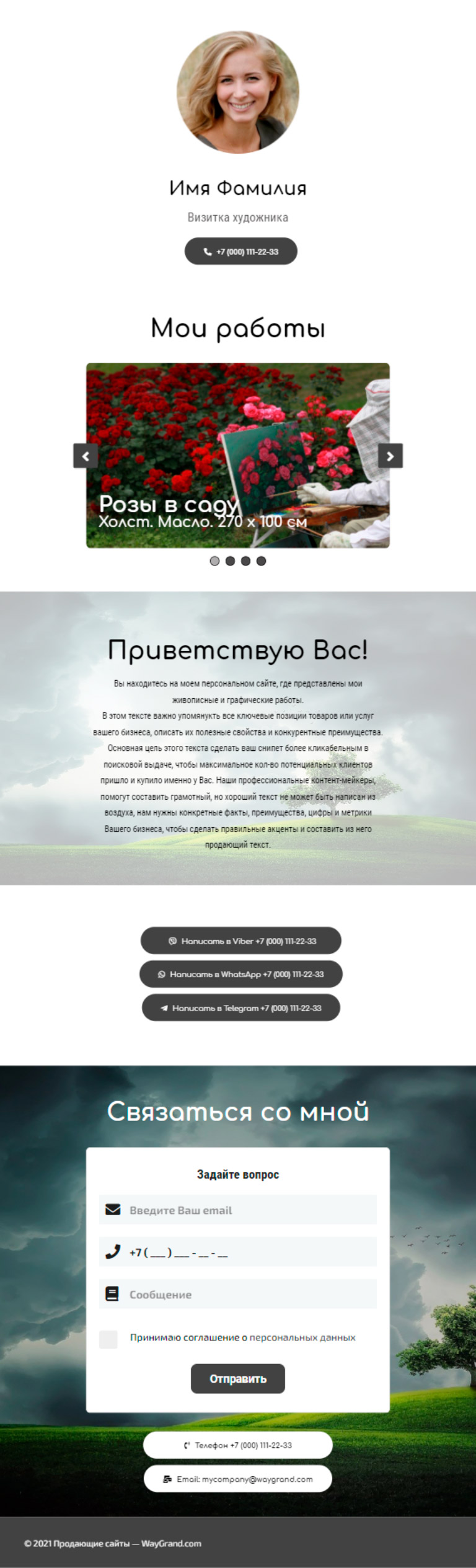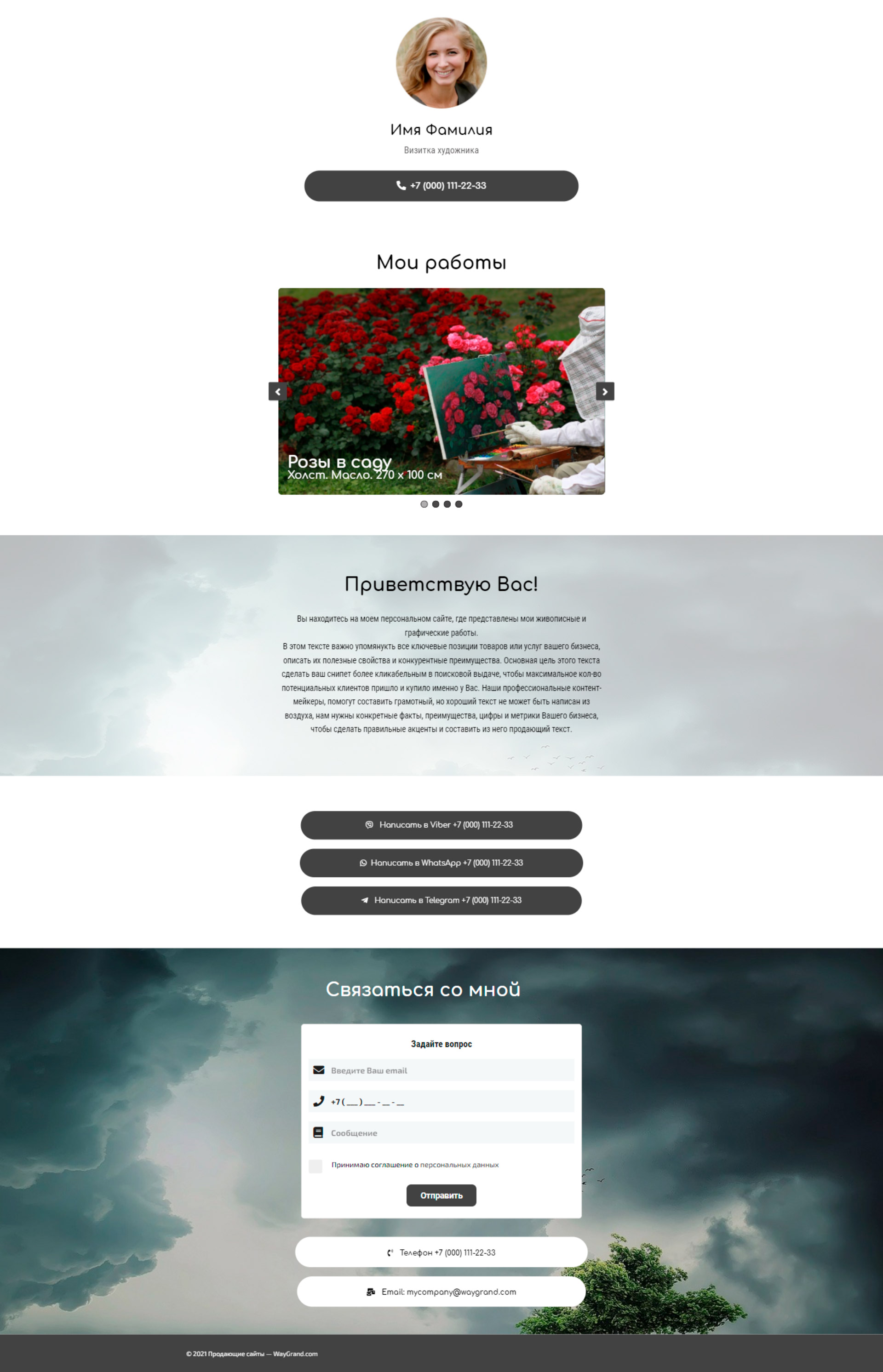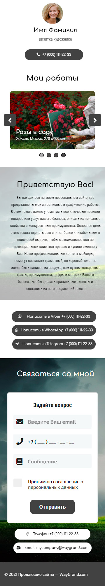 Закажите готовый продающий сайт визитка #0826101 в Архангельске за 5-7 дня «под ключ»: свёрстан, отрисован и готов к рекламе. Тематика шаблона «Визитка художника».