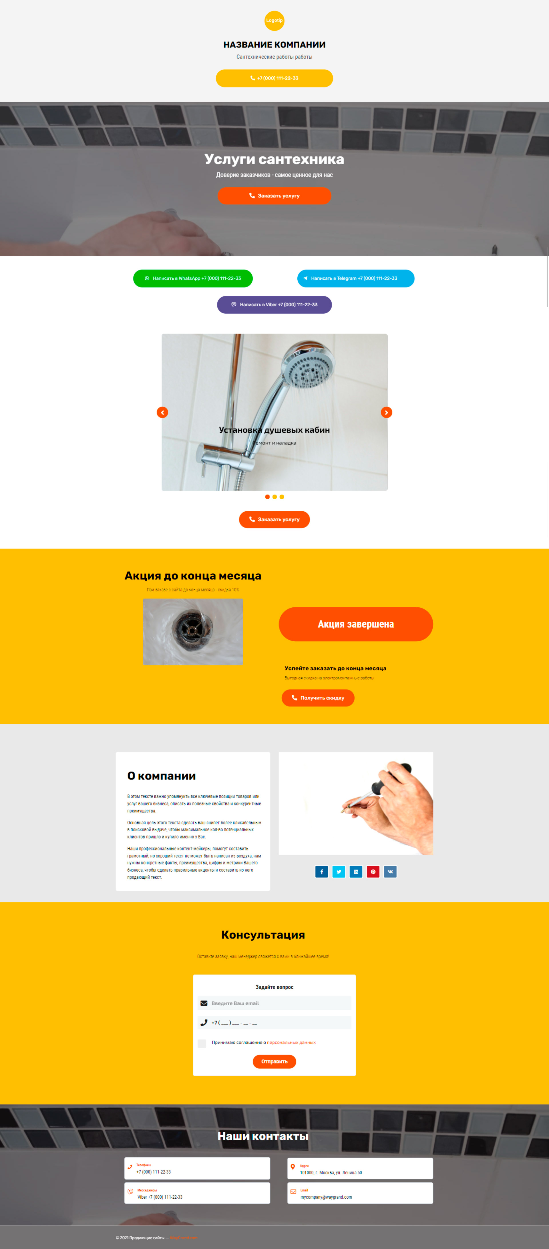Закажите готовый продающий сайт визитка #2154101 в Архангельске за 5-7 дня «под ключ»: свёрстан, отрисован и готов к рекламе. Тематика шаблона «Сантехнические работы».
