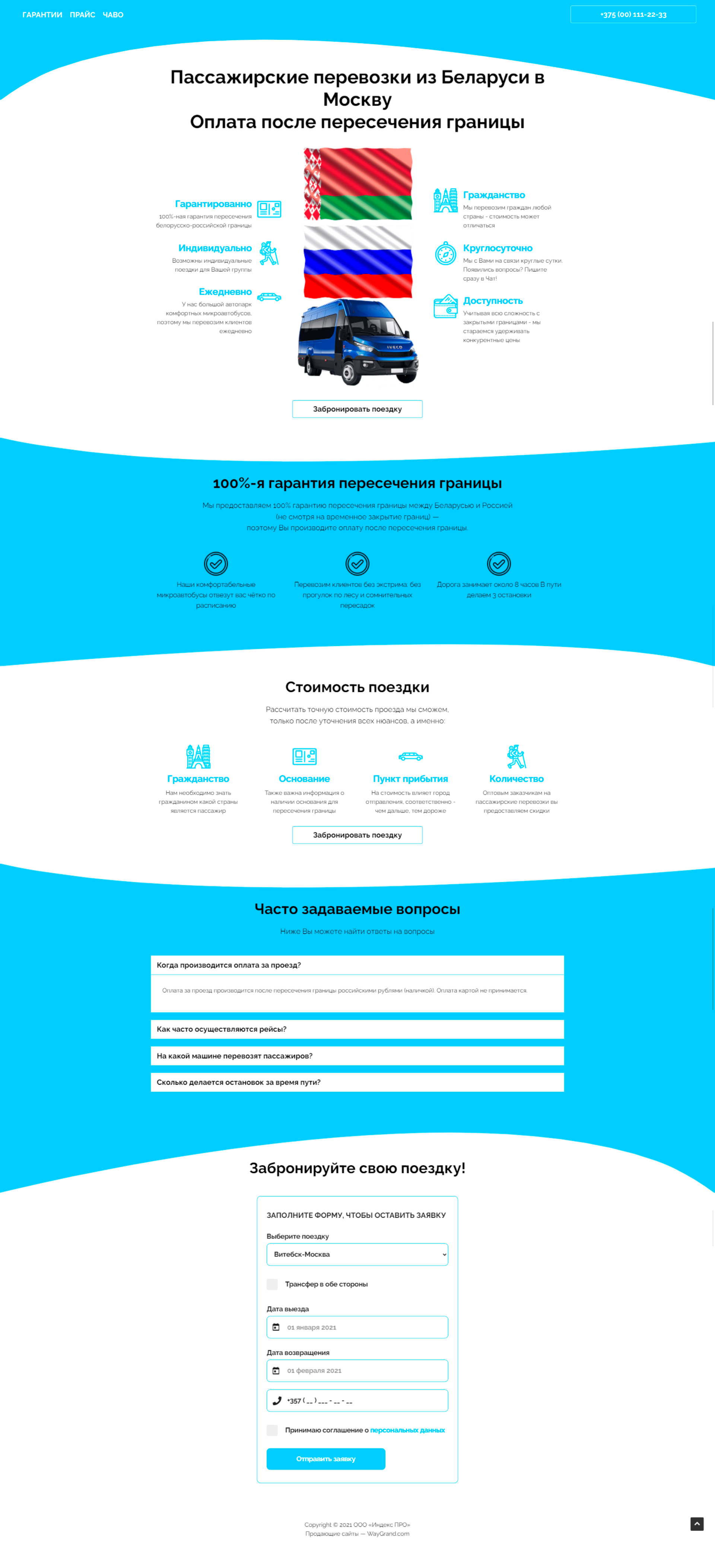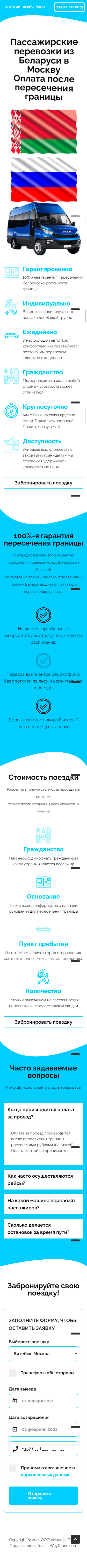 Закажите готовый продающий сайт лендинг #2528204 в Архангельске за 1-3 дня «под ключ»: свёрстан, отрисован и готов к рекламе. Тематика шаблона «Пассажирские перевозки из Беларуси в Москву».
