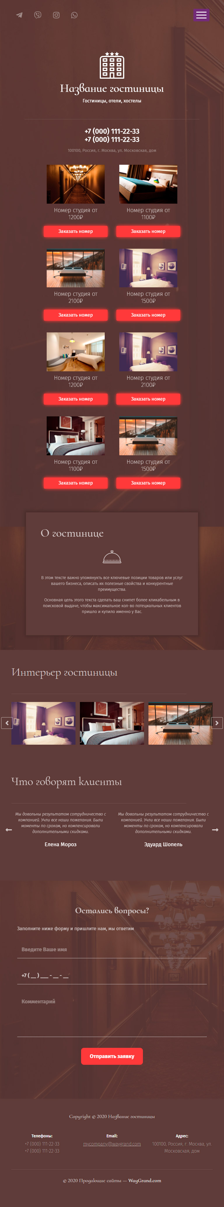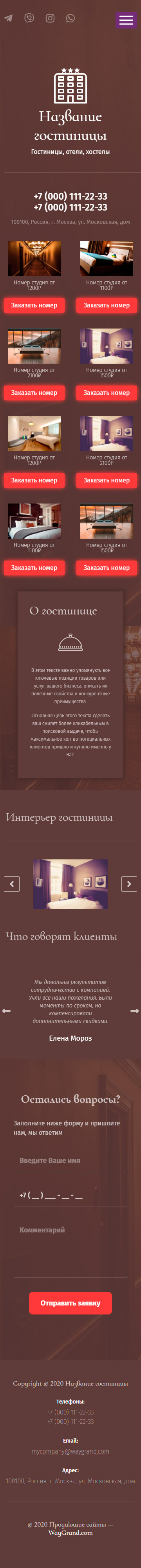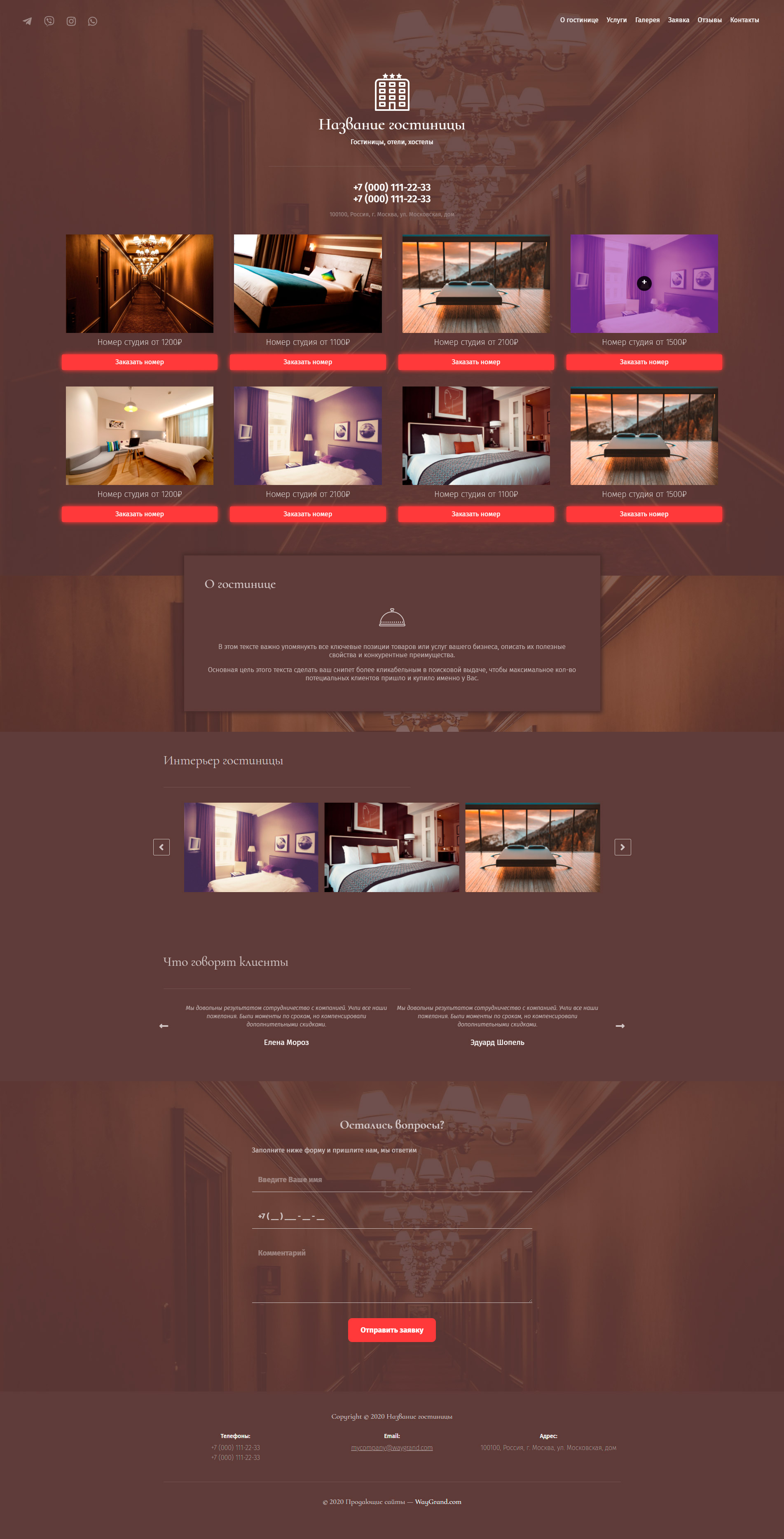 Закажите готовый продающий сайт лендинг #1905202 в Архангельске за 1-3 дня «под ключ»: свёрстан, отрисован и готов к рекламе. Тематика шаблона «Гостиница, повышенный комфорт».