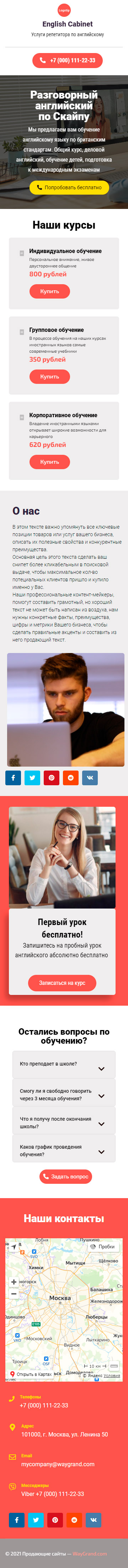 Закажите готовый продающий сайт визитка #1463101 в Архангельске за 5-7 дня «под ключ»: свёрстан, отрисован и готов к рекламе. Тематика шаблона «Услуги репетитора по английскому».