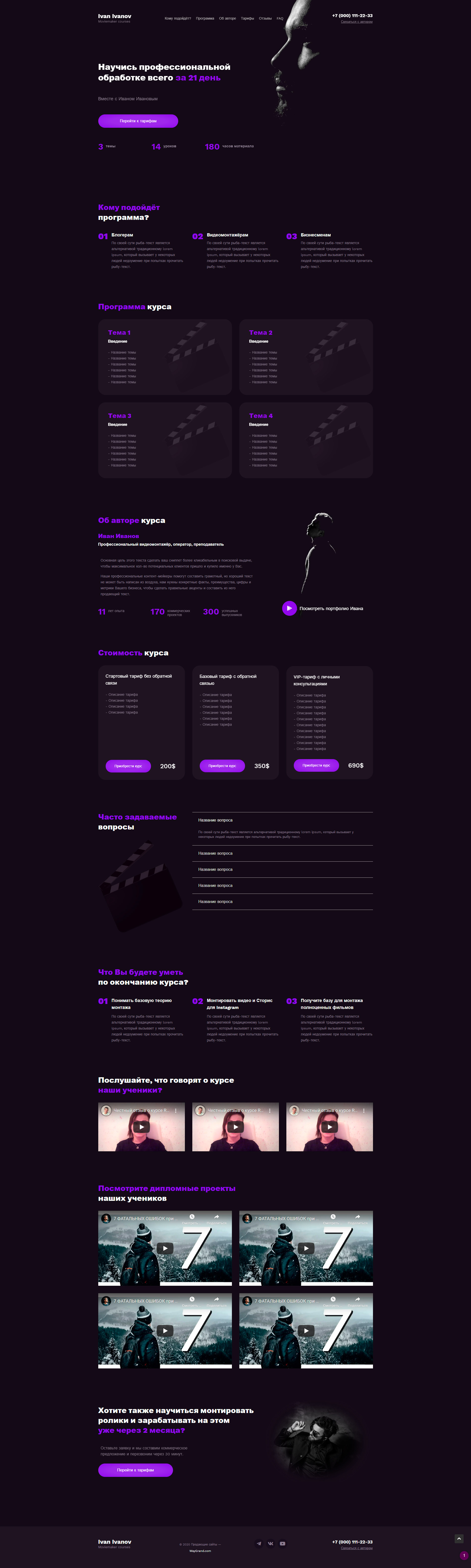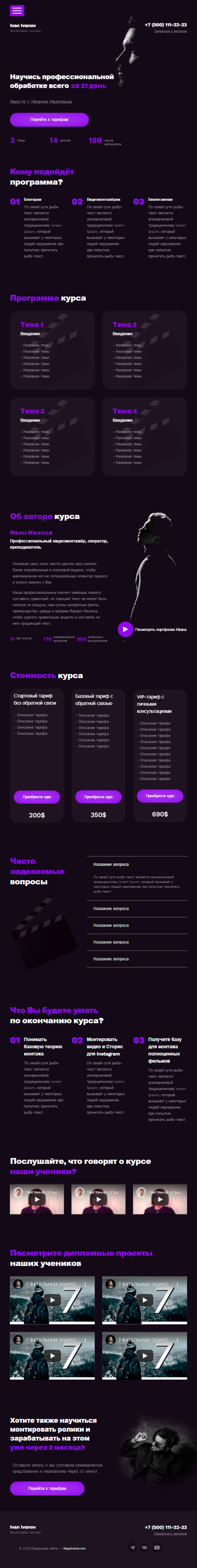 Закажите готовый продающий сайт лендинг #1467204 в Архангельске за 1-3 дня «под ключ»: свёрстан, отрисован и готов к рекламе. Тематика шаблона «Для курса видеомонтажа».