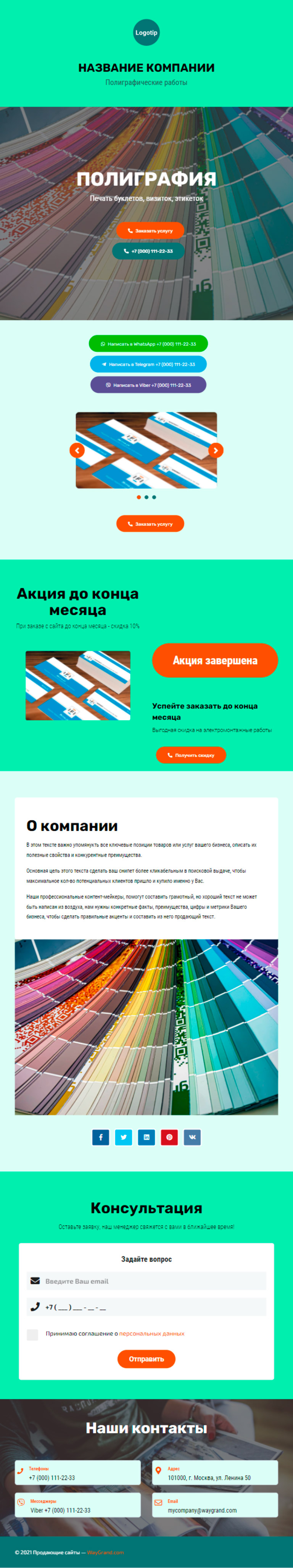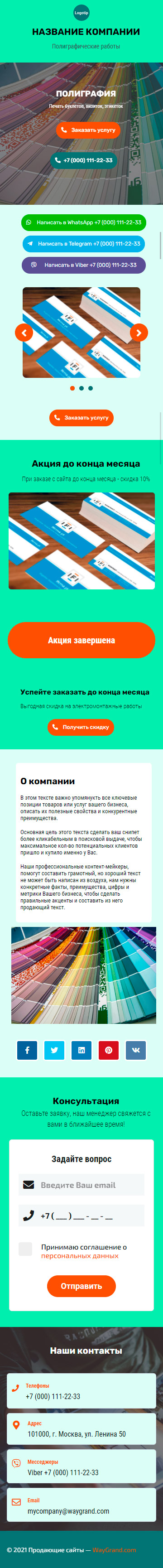 Закажите готовый продающий сайт визитка #1826101 в Архангельске за 5-7 дня «под ключ»: свёрстан, отрисован и готов к рекламе. Тематика шаблона «Полиграфия».