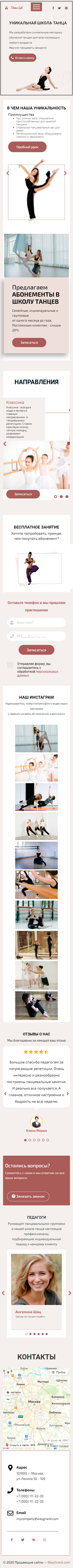 Закажите готовый продающий сайт лендинг #1923202 в Архангельске за 1-3 дня «под ключ»: свёрстан, отрисован и готов к рекламе. Тематика шаблона «Школа танцев».