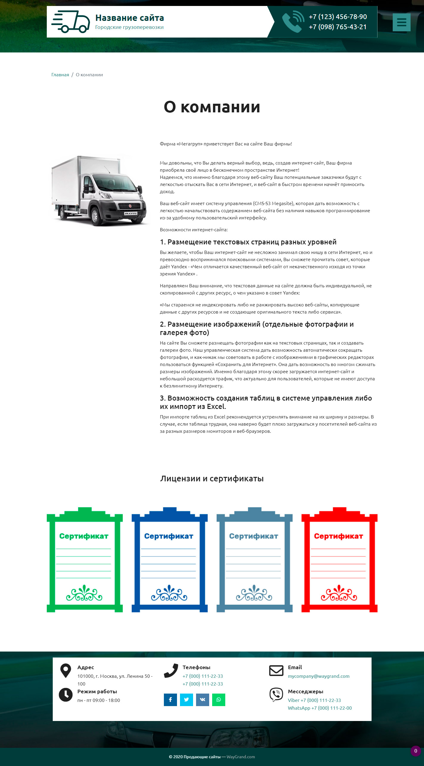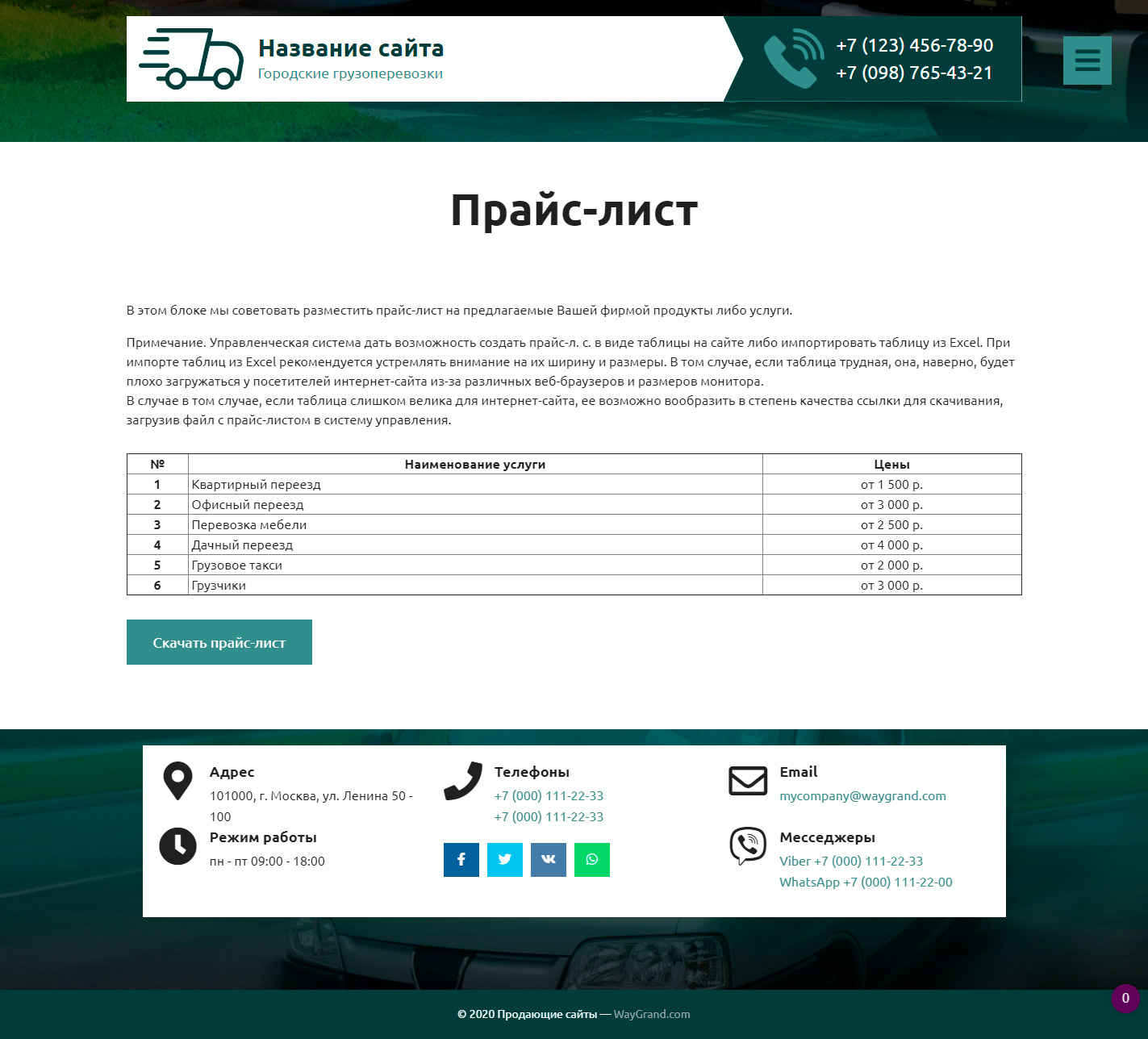 Закажите готовый продающий сайт визитка #2515302 в Архангельске за 5-7 дня «под ключ» по доступным ценам на WayGrand: свёрстан, отрисован и готов к рекламе. Тематика шаблона «Городские грузоперевозки».