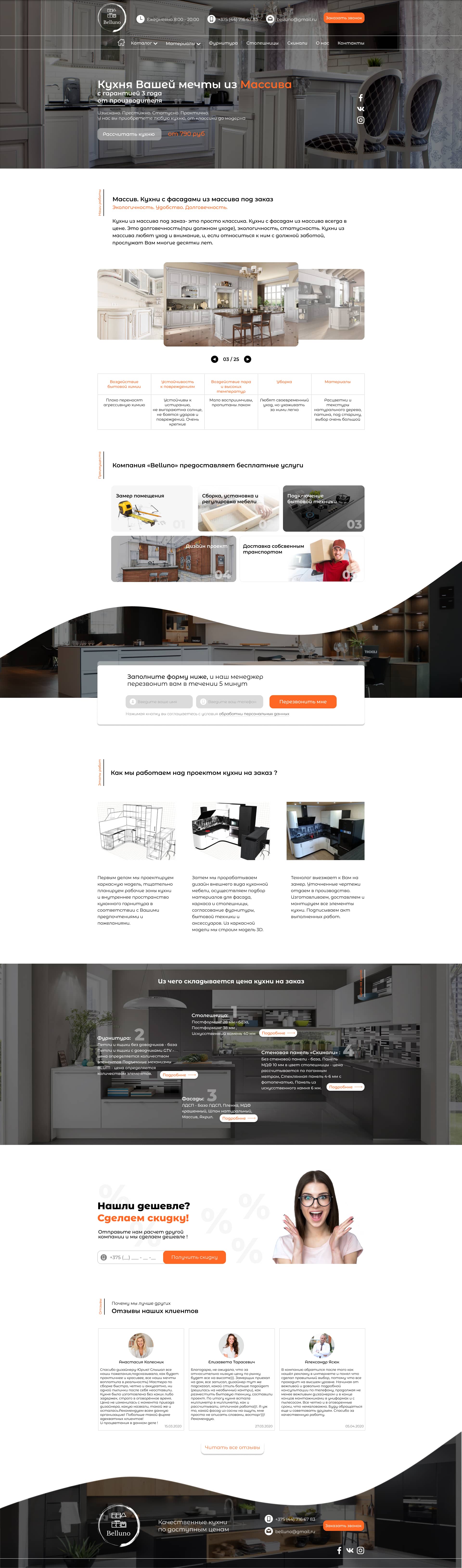 - Блок "Выберите кухню на Ваш вкус и мы рассчитаем сроки и стоимость"